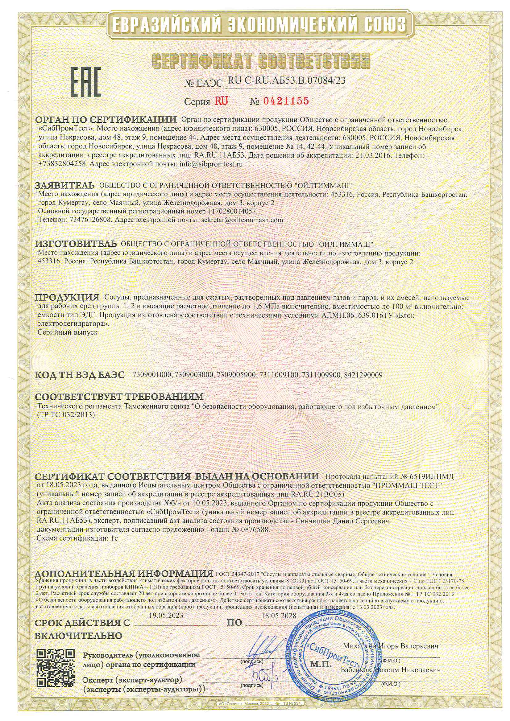 Сепараторы до 16МПа ТР ТС 010 5д по 24.10.2027